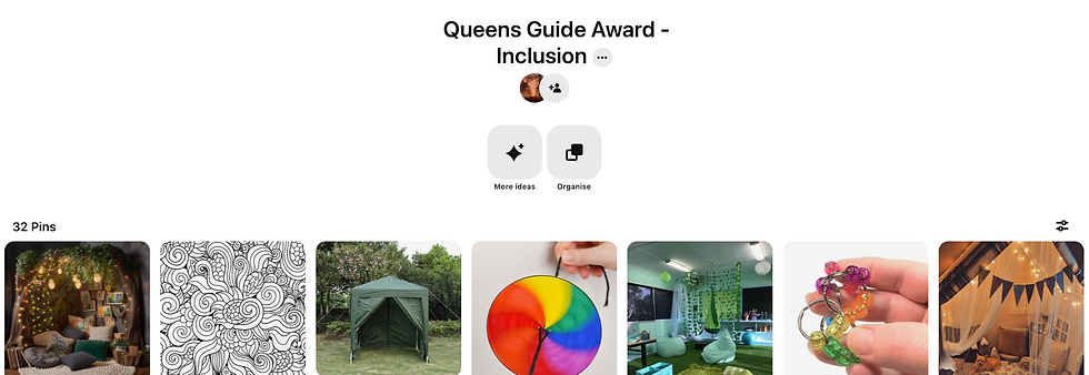 For my Inclusion focus, I'll be working with my Girlguiding county, Cumbria South, to create a relaxation, sensory, break area for young members at our County's 50th anniversary camp, the 'Golden Curlew Camp'. The idea is to create a space for young members attending the event who may need a quiet area to relax during the day.