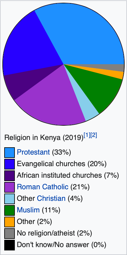 Kenya's largest ethnic group is the Kikuyu who make up just less than one fifth of the total population. As of 2019, the largest native ethnic groups include;